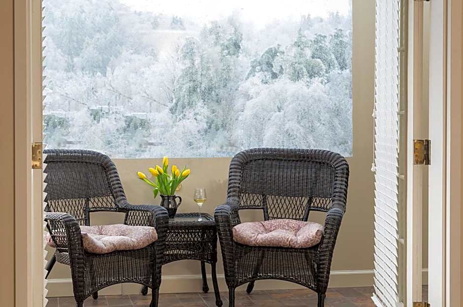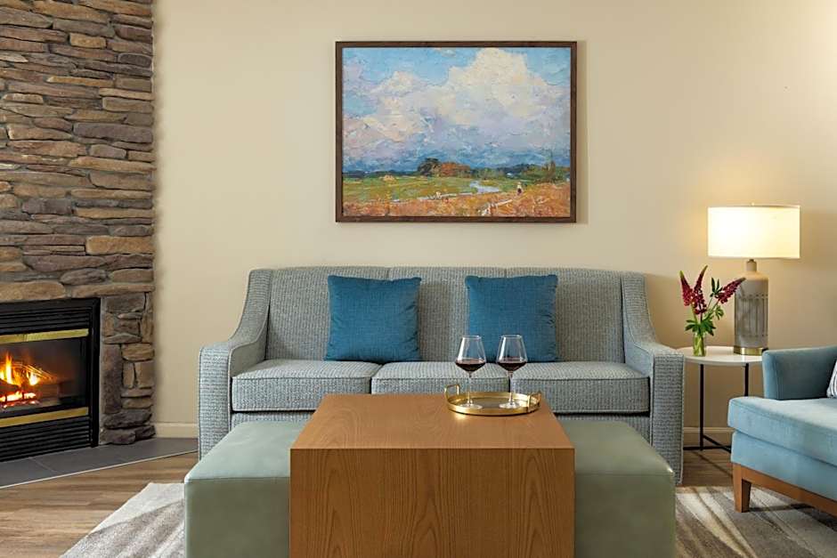 This suite features views of the pond and stone terrace. A separate living area with a sofa bed is provided. 2 flat-screen TVs are offered as well. A dressing room, in-room sink, and fireplace are included.